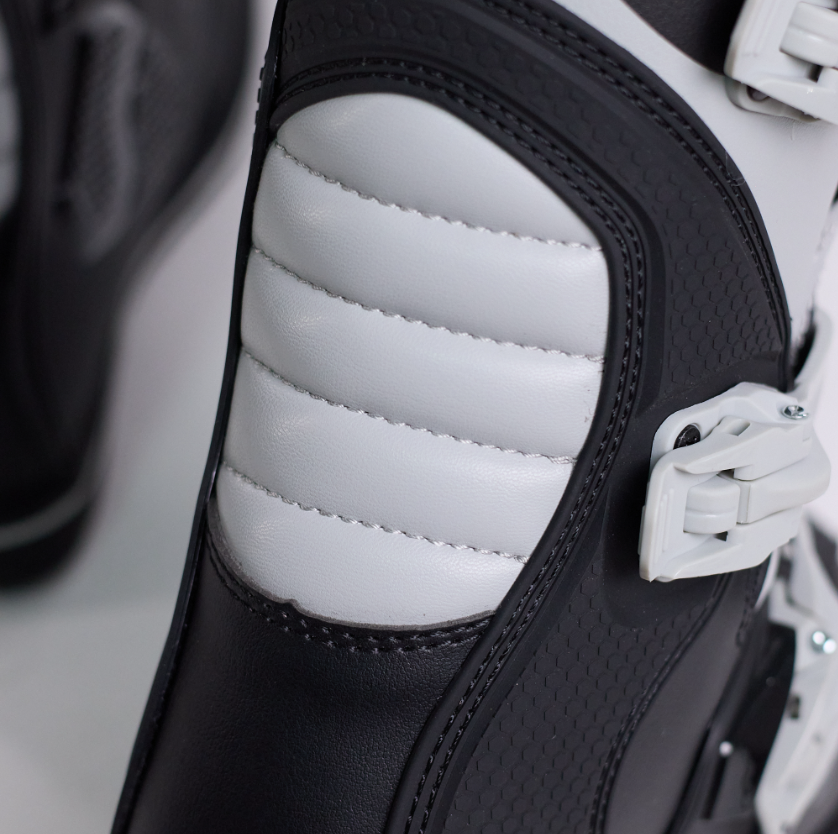 Конструкция сохраняет естественную подвижность ноги, защищая от ударов и перегрузок при прыжках и жёстких приземлениях. Передняя защитная пластина голени выполнена из прочного термопластика, а внутренняя гидрофобная подкладка адаптируется к анатомии стопы, повышая комфорт с каждой поездкой.