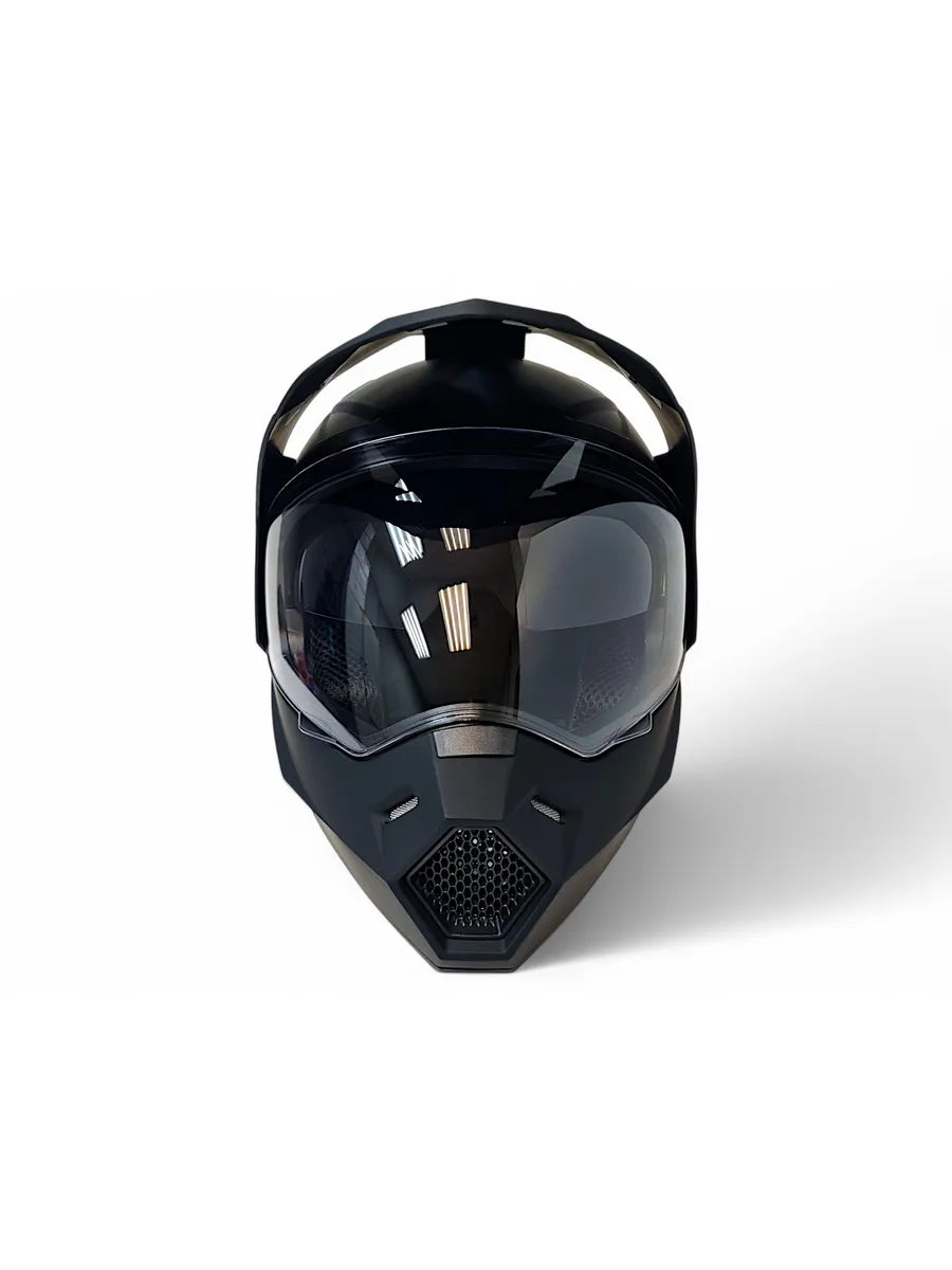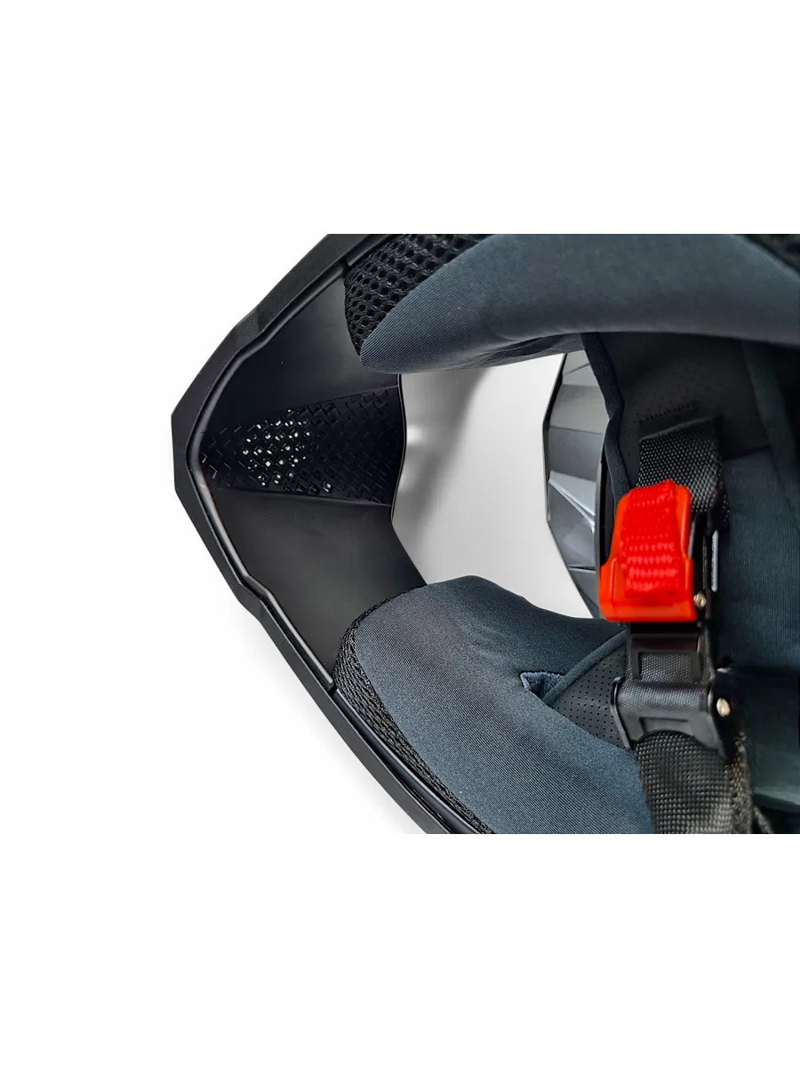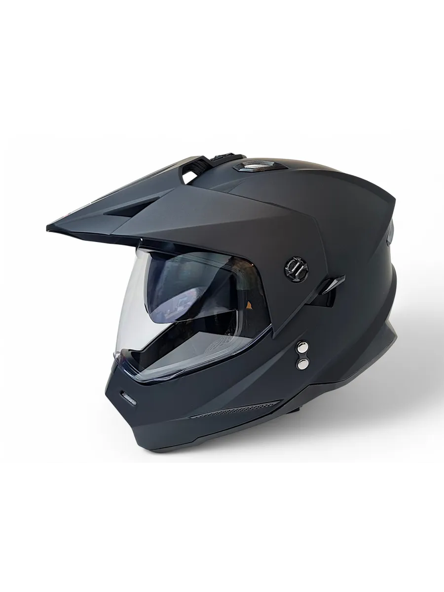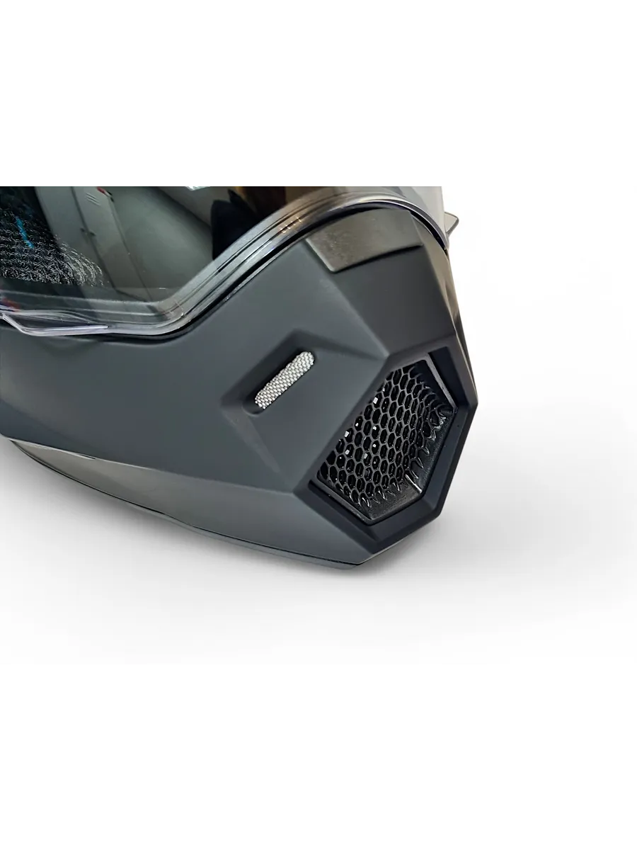 -Мотошлем возможно использовать как со стеклом, так и с кроссовыми очками