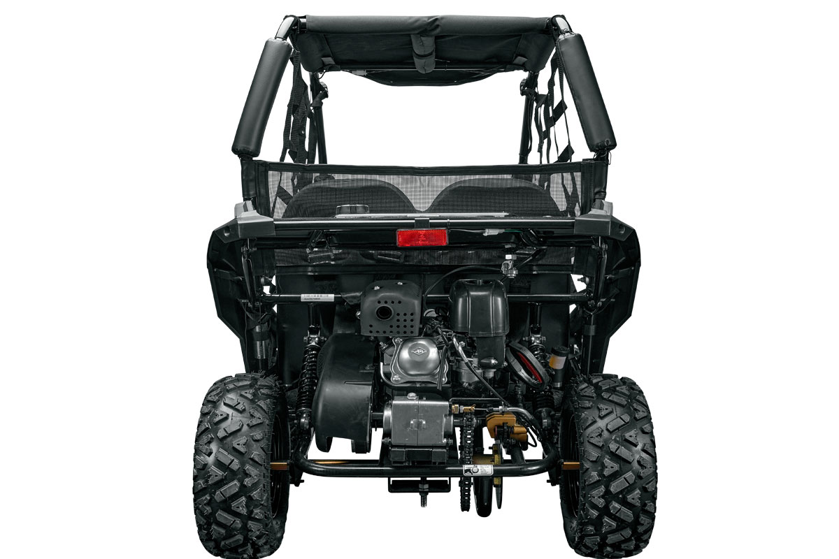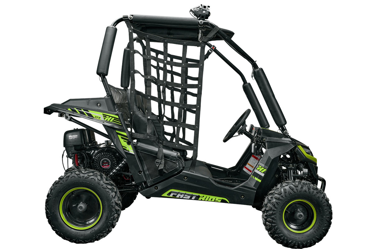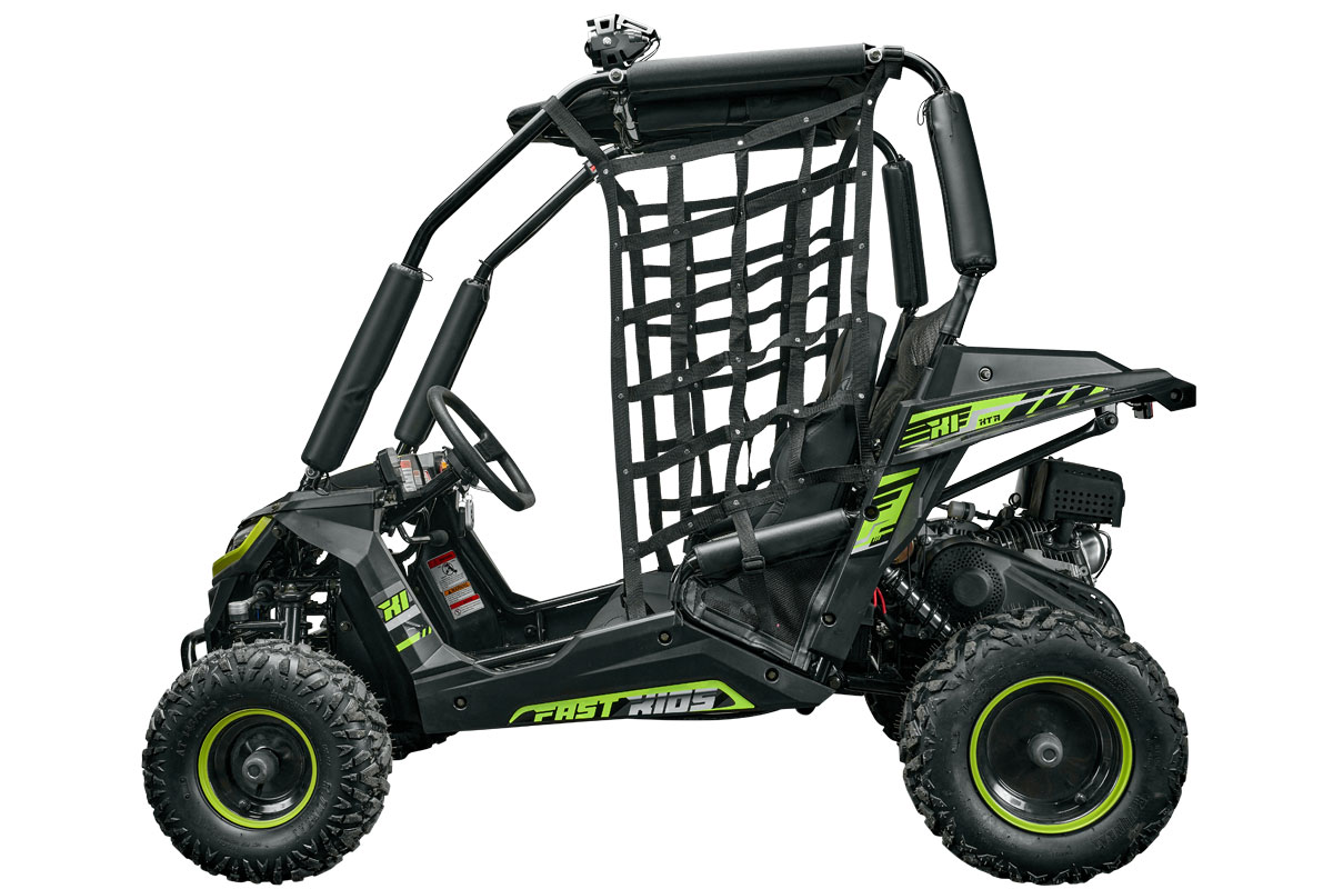 Пуск двигателя предусматривает не только электростартер, но и ручного стартер, который упрастит родителям задачу по запуску машинки в холодное время года, а дистанционный пульт запуска и выключения двигателя обеспечит дополнительную безопасность и удобство.