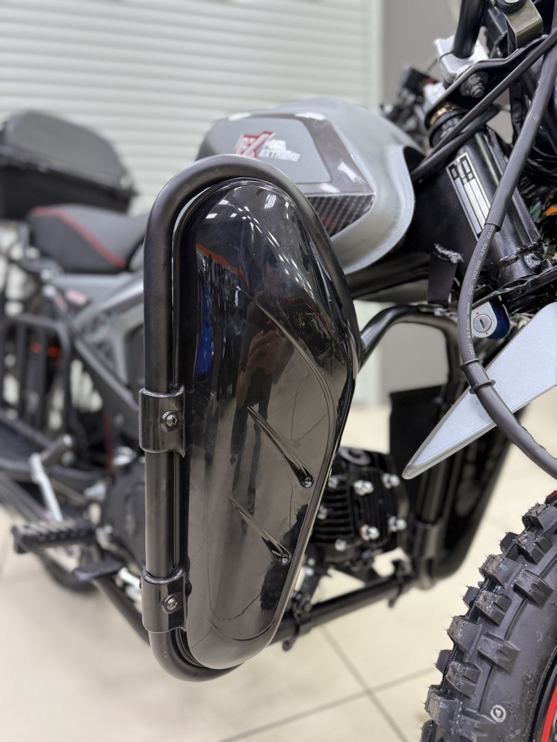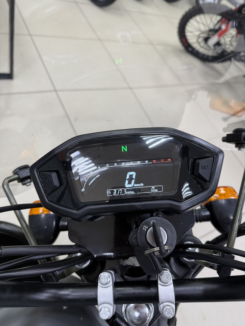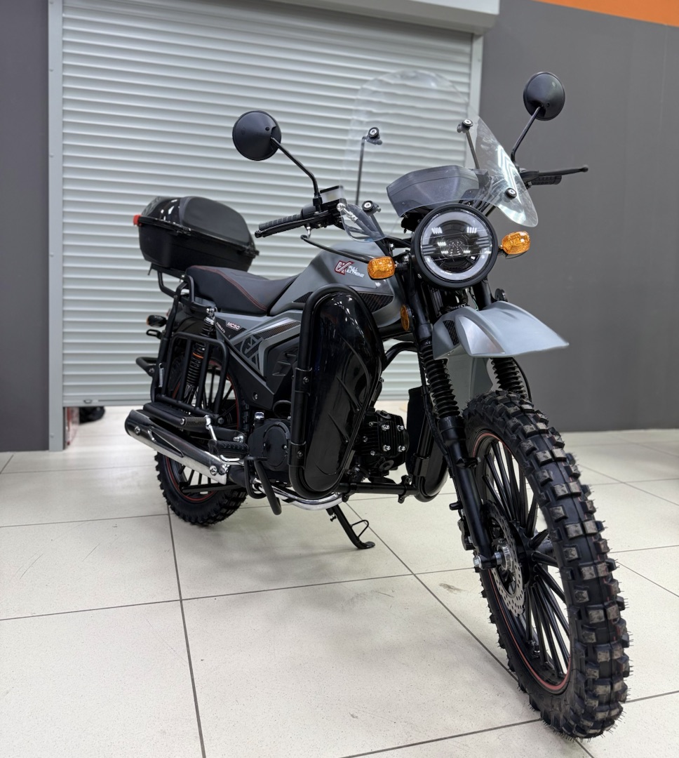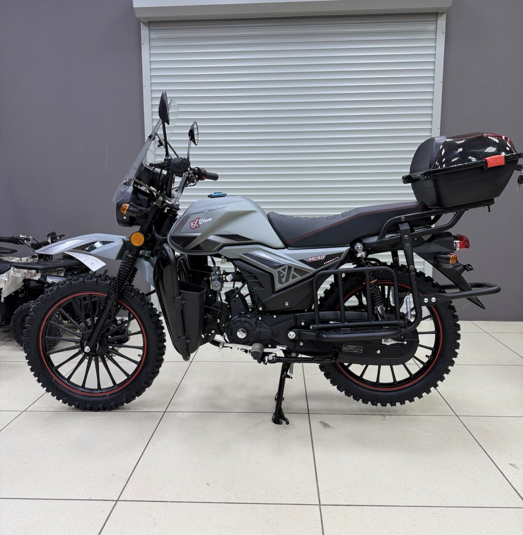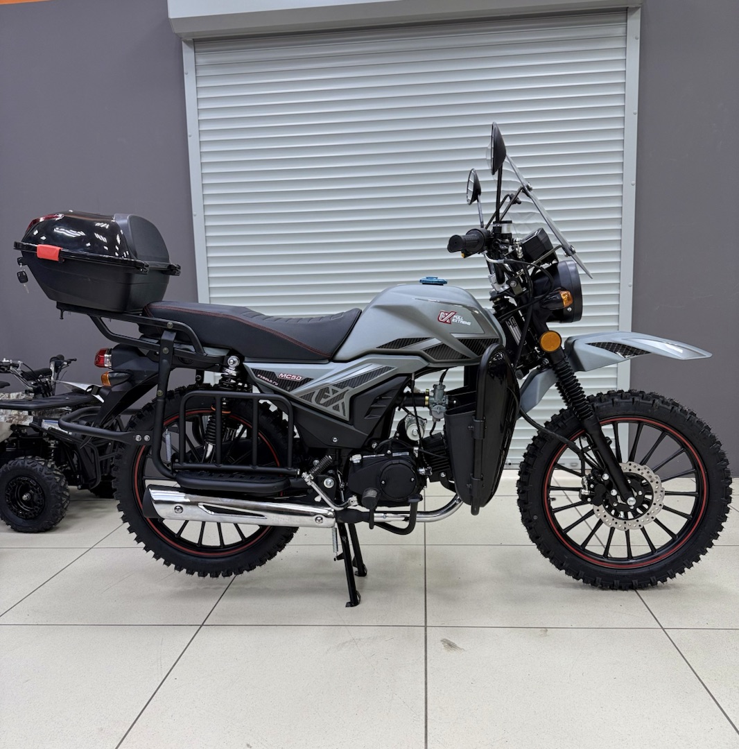 Мопед FX MC‑50 MAX OFF ROAD — надёжный выбор для городских поездок и лёгкого бездорожья: 4‑тактный двигатель объёмом 125 см³ и мощностью до 9 л. с. обеспечивает достойную динамику, а прочная стальная рама и цепной привод гарантируют долговечность. Модель оснащена электро‑ и кикстартером для удобного запуска, механической 4‑ступенчатой трансмиссией, дисковыми гидравлическими тормозами спереди и барабанными сзади. Литые алюминиевые колёса (17/17 дюймов) с внедорожным протектором, подвеска без регулировки, топливный бак на 10 л и максимальная нагрузка до 150 кг делают этот мопед практичным и универсальным — он подойдёт как для ежедневных перемещений по городу, так и для выездов на природу. Сухой вес в 82 кг и высота по седлу 760 мм обеспечивают комфортную посадку и манёвренность в самых разных условиях.