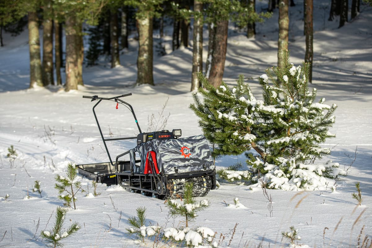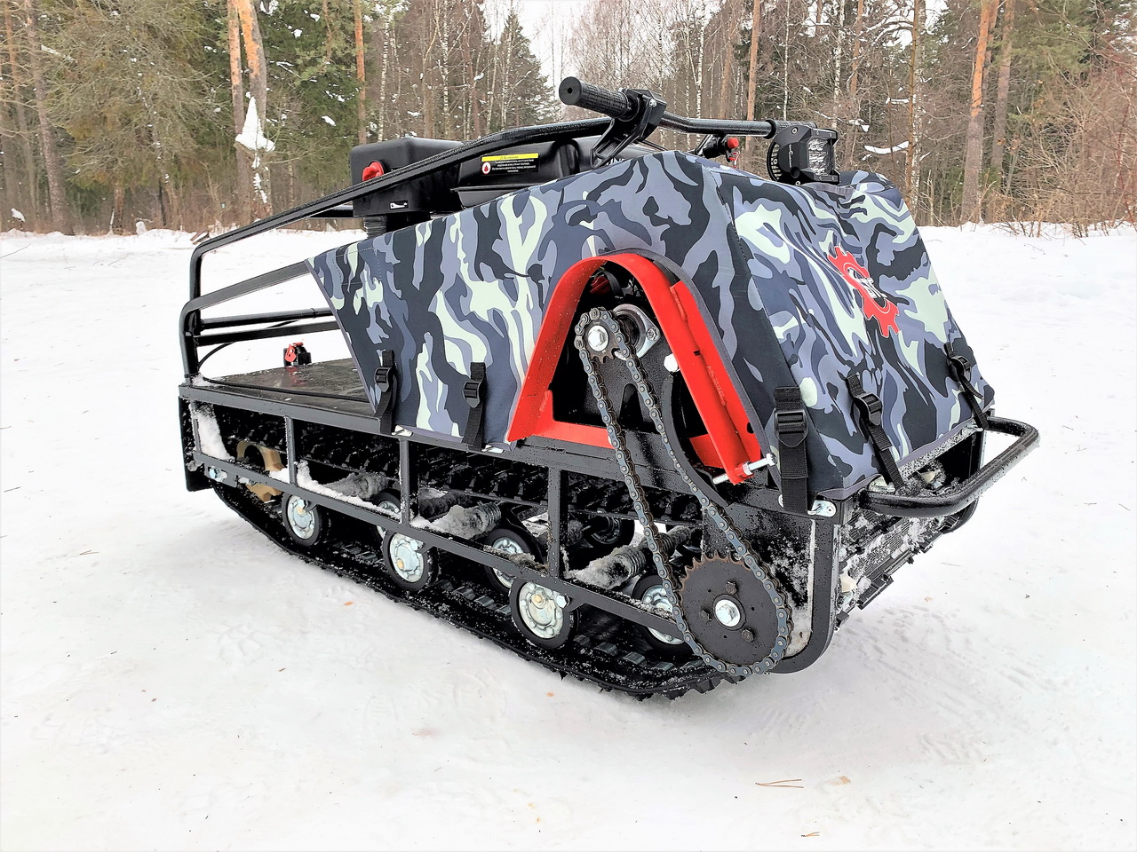Это базовая модель буксировщиков компании БТС. Рама у буксировщика максимально открытая, что улучшает выброс снега (снег не налипает). Установлена защита нижней звезды. Двигатель и трансмиссия интегрированы на одной подмоторной плите, что позволяет точно выставлять шкивы относительно друг друга, в следствии чего устраняется перекос ремня вариатора и увеличивается его срок службы. Прочная стальная рама, каркас безопасности и металлический капот надежно защищают силовую установку мотобуксировщика.