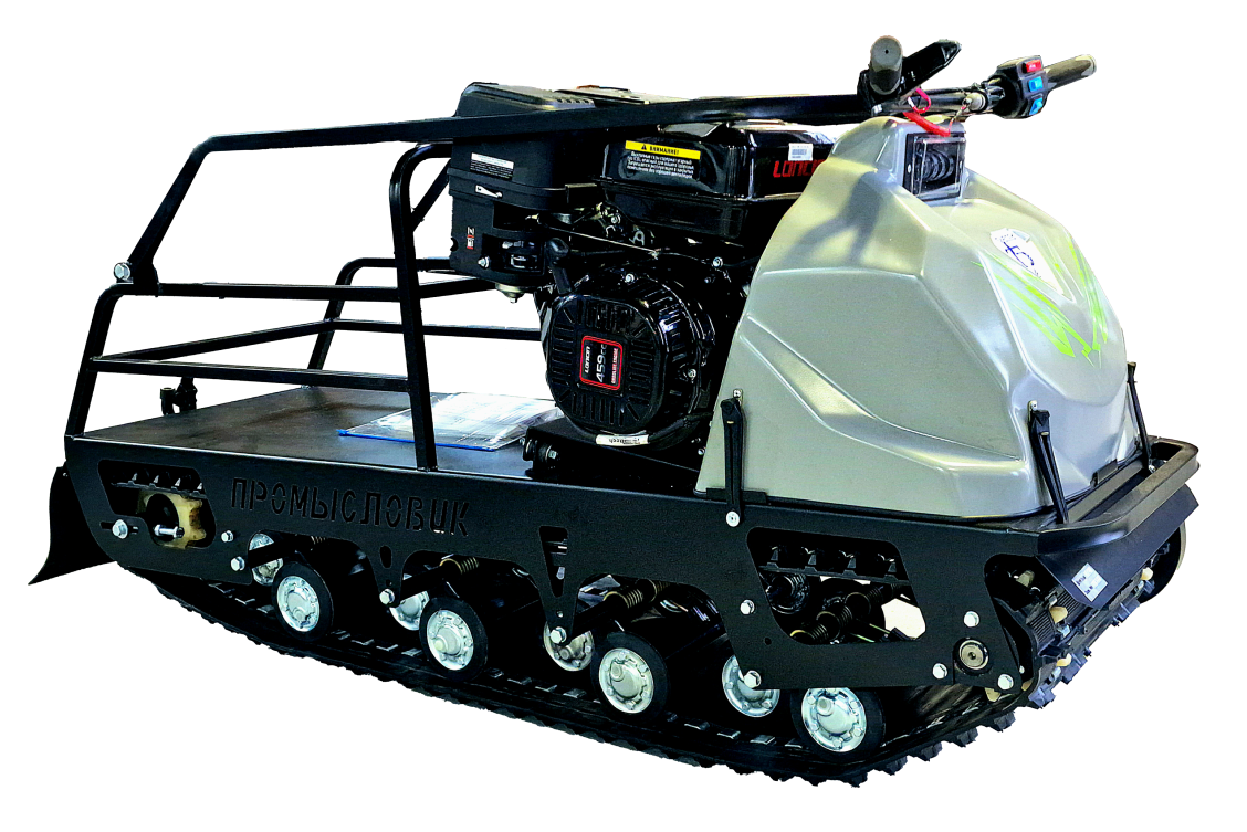 Мотобуксировщик из классической линейки на базе гусеницы шириной 500мм с максимальной площадью опоры (гусеница Буксировщик LONG).