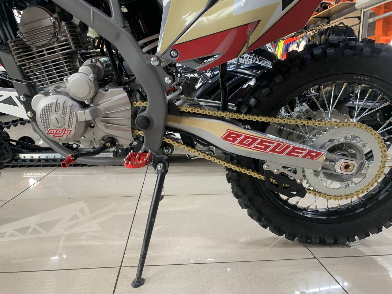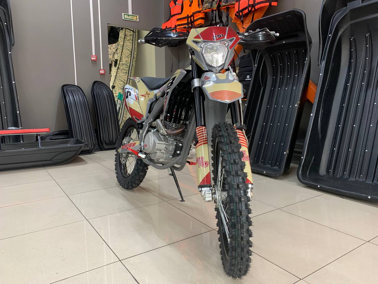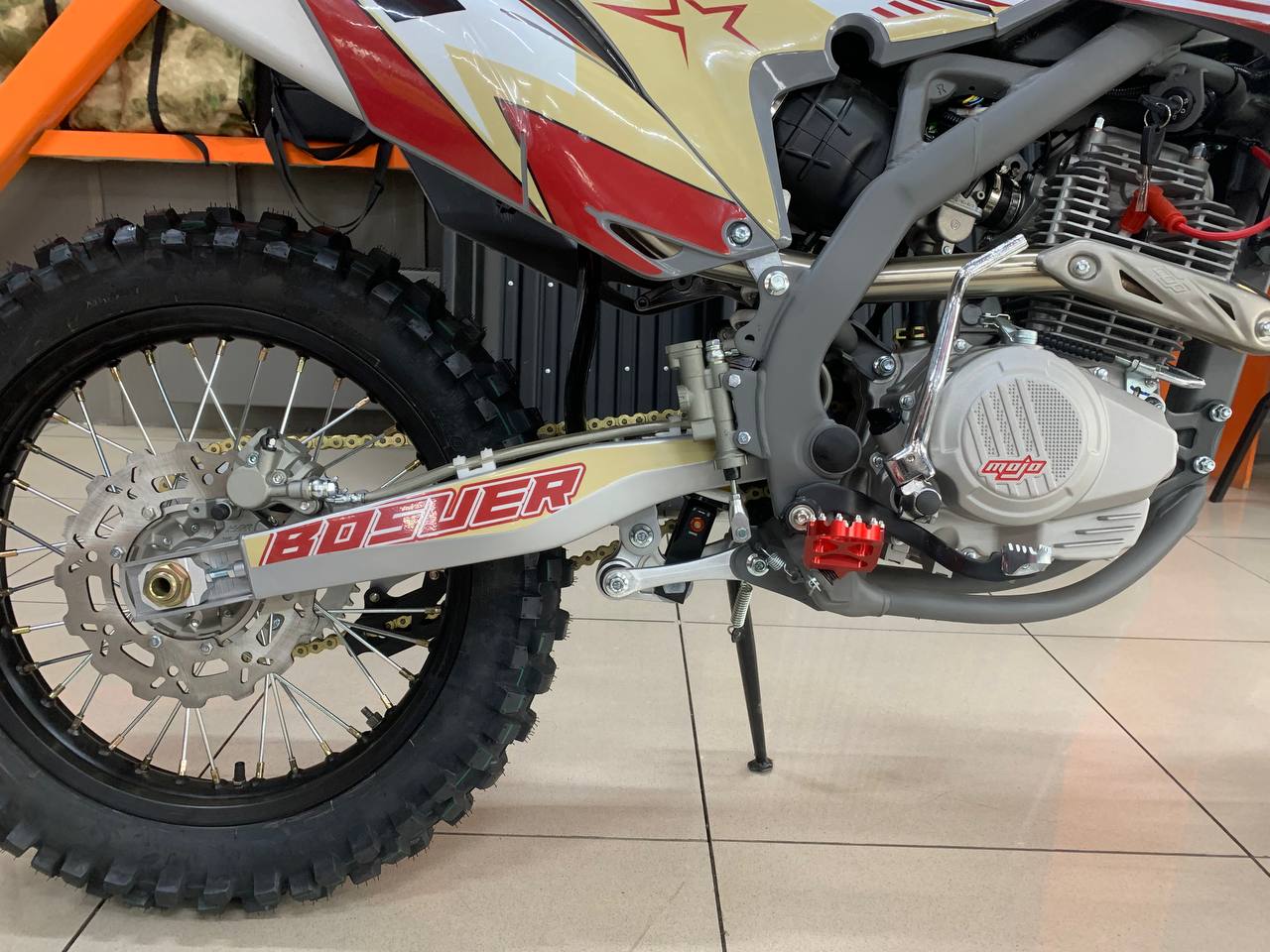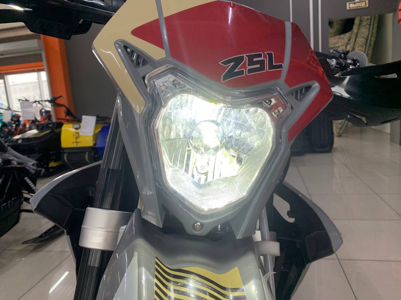 Z5L уже в заводской комплектации готов к покорению серьезного бездорожья: нерегулируемая энергоемкая подвеска с большими ходами, вилка “перевертыш” и наличие рычагов задней прогрессии. Установлена “злая” внедорожная резина Carrystone. Мощная гидравлическая тормозная система HSК Racing остановит байк в любых условиях. На мотоцикле установлены: усиленные черные колёсные диски MOJO, CNC подножки c увеличенным зацепом, датчик моточасов, защита рук, грипсы и ручка газа Nibbi Racing. В фару установлена диодная лампа.