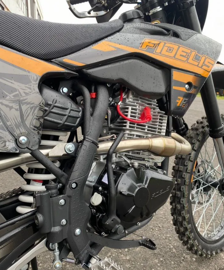 Fidelis Epic PR300 — это продвинутый эндуро-мотоцикл, сочетающий в себе выносливость, мощность и точность управления. Сердцем модели стал двигатель PR300 (ZS175FMN) с верхним распределительным валом и балансировочным валом. Конфигурация 74×61.4 мм обеспечивает уверенную тягу во всём диапазоне оборотов, а спортивный карбюратор NIBBI PE30 гарантирует мгновенный отклик на газ. Усиленная хромомолибденовая рама, алюминиевые колёса и маятник, а также алюминиевая прогрессия создают прочную и лёгкую конструкцию. Подвеска MNT с регулировками спереди и надёжная задняя стойка обеспечивают устойчивость и комфорт даже в самых жёстких условиях. Колёсная база 1350 мм вкупе с алюминиевым рулём 7075 (сечение 28/22) дарит точное управление и стабильность на трассе.