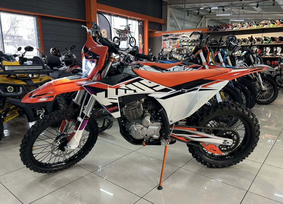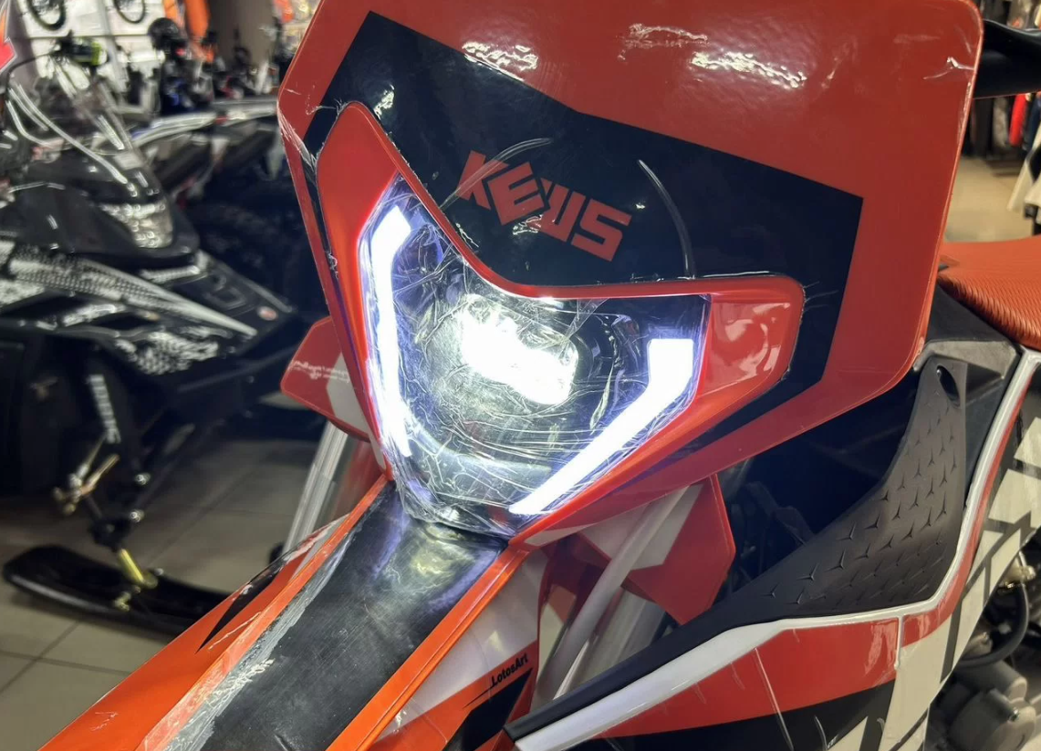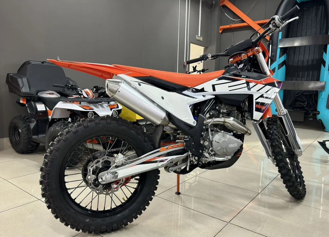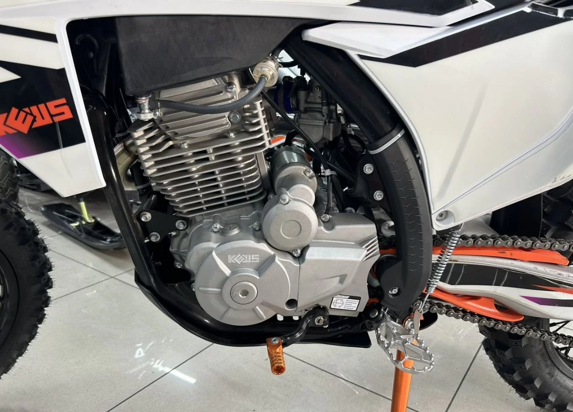 KEWS K23 PR300 21/18 - мощный полноразмерный мотоцикл, который оценят самые требовательные пилоты. Является одним из самых лёгких в своем классе мотоциклов на воздушных моторах. Новая архитектура и новый дизайн повторяют характеристики KTM 2024. От своего брата KEWS K23-L PR300 отличается высотой по седлу - он ниже на 3 см.